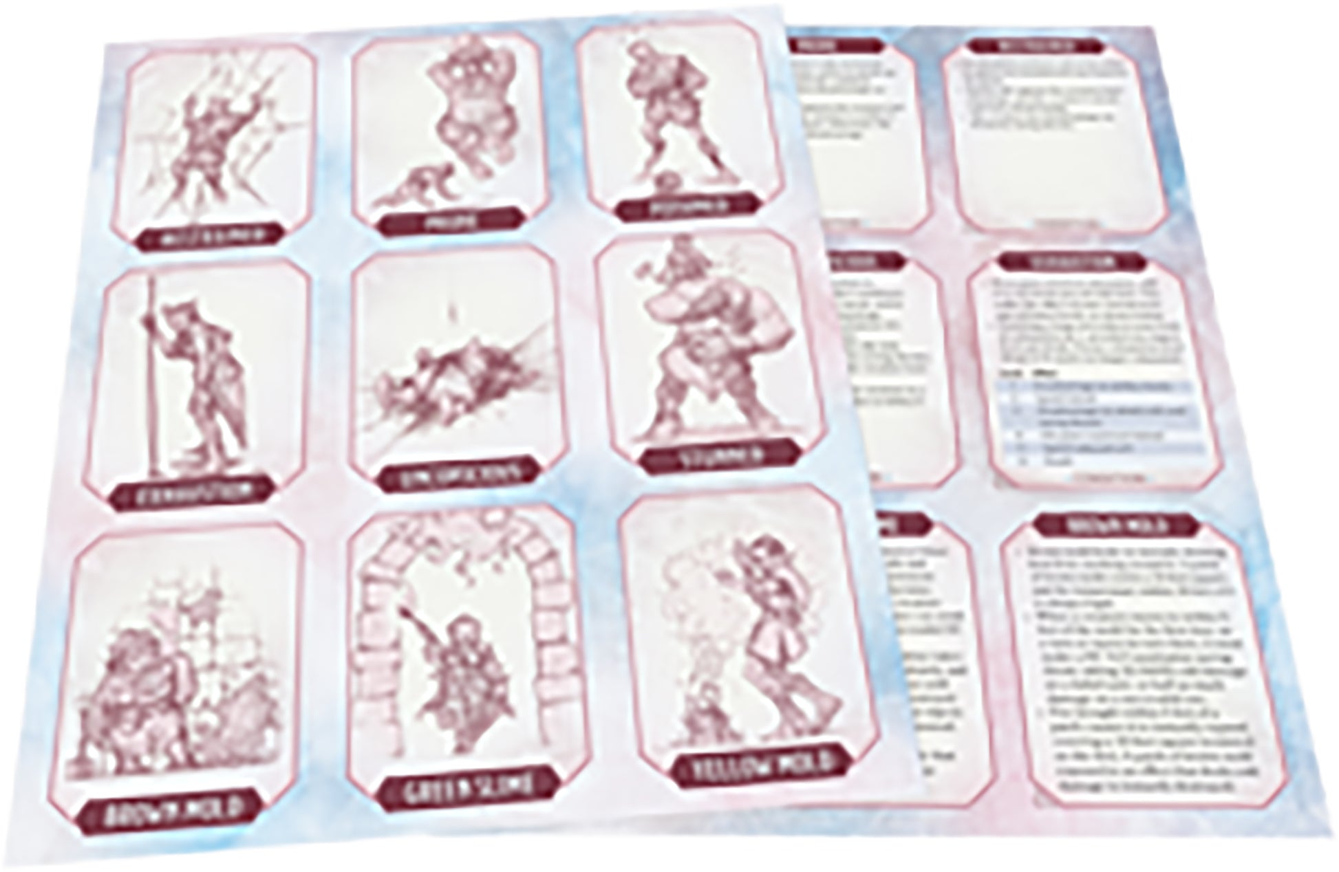 - 18 illustrated punch out condition cards, including mold and slime cards for dungeon encounters