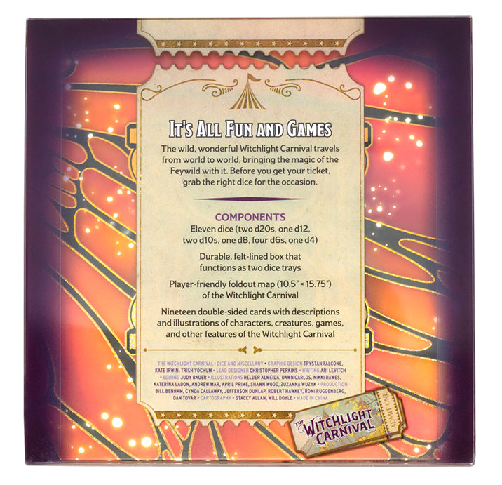 The wild and wonderful Witchlight Carnival travels from world to world, bringing the magic of the Feywild with it. Before you get your ticket, grab the right dice for the occasion.The wild and wonderful Witchlight Carnival travels from world to world, bringing the magic of the Feywild with it. Before you get your ticket, grab the right dice for the occasion.